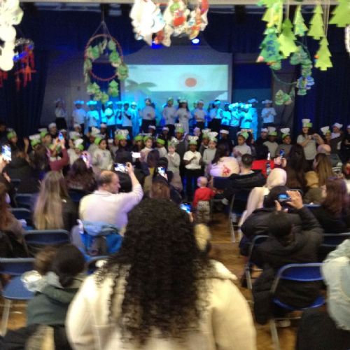 Year 2 performed their annual winter show - The Journey Home - to a packed Upper Hall. Parents and carers were kept entertained with songs and a very poignant story about the plight of our planet's endangered species. Year 2 children and staff had been preparing for weeks to ensure a spectacular performance. The children had made head bands to represent the animal (- polar bears, pandas and elephants-) they had researched, and they also created stunning pictures to display during their performance. In addition, they did some wonderful writing in their literacy lessons based on their class animal. The project showed how passionate the children are about conservation and gave them a broader insight into our world