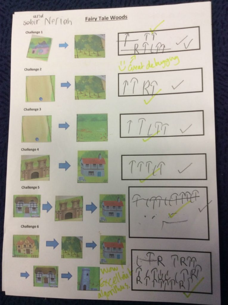 In year 1 children begin to learn about algorithms. They start with a series of unplugged activities which introduce: order, sequence and debugging. Then, they move on to writing and checking algorithms for moving each other and then BeeBots from one place on another.
