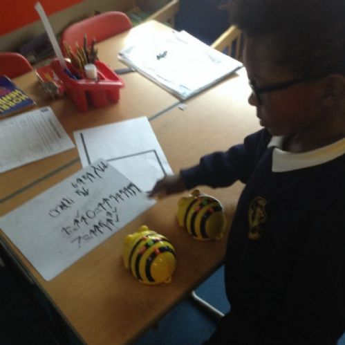 In Year 2 children carry on learning about algorithms and how they are programmed into digital devices. Again, they start with unplugged activities and then move on to programming Probots. First, to move from one place to another and then to draw a series of shapes. They spend time thinking about stepping through their algorithms and breaking them down.